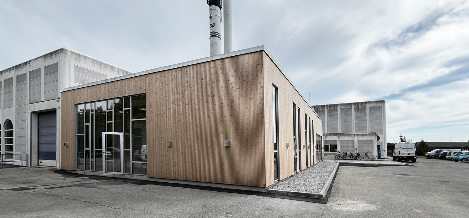 Tilbygningen til Sæby Varmeværk tager udgangspunkt i at bevare det eksisterende bygningsvolumen og samtidig tilføre bygningen en ny, bæredygtig identitet. Projektet arbejder med respekt for den oprindelige struktur, hvor tilbygningen lægger sig som et nyt lag uden på det eksisterende byggeri og skaber en naturlig sammenhæng mellem gammelt og nyt.